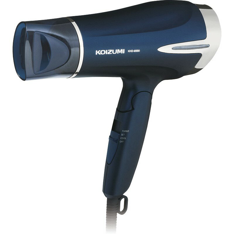 コイズミのマイナスイオンヘアドライヤー KHD-9330/Aは、速乾性と髪へのやさしさを兼ね備えたコンパクトドライヤーです。